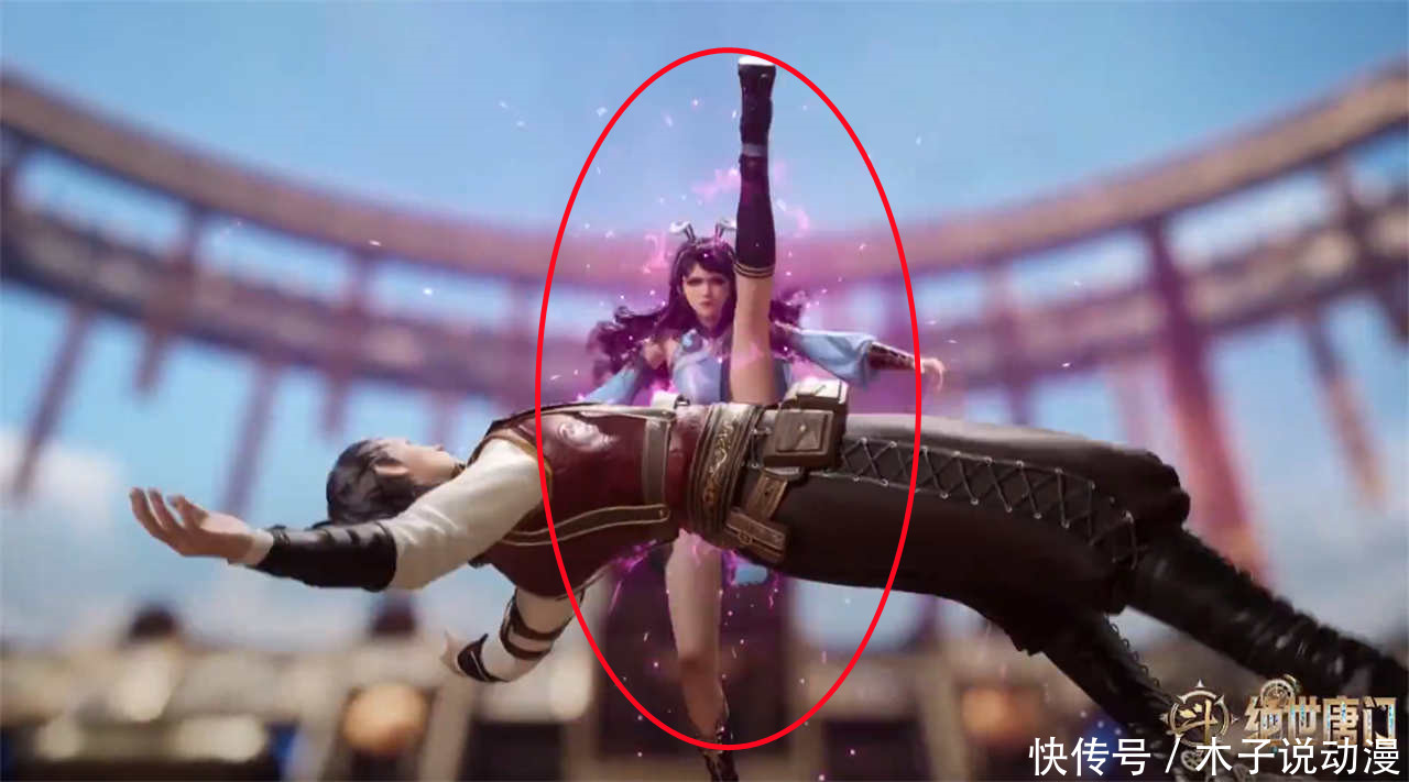 在这集中江楠楠就有一个动作非常大胆,甚至差点就走光了,这个姿势就是江楠楠在空中使用飞踢的方式把对手从空中踢下来的姿势。从画面中可以看到江楠楠的腿法非常不错,一双大长腿使用的非常好,在这次和对手交战的时候,江楠楠先将对手踢到空中,然后再从空中用这双美腿将对手给重重的踢了下去。